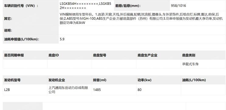 『英朗1.5L四缸車型工信部公告截圖』