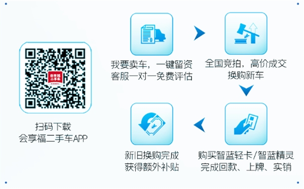 智藍汽車二手商用車平臺交易流程專業、便捷。用戶可通過下載“會享?!盇PP在線辦理置換流程,點擊“我要賣車”一鍵留資,專屬客服進行一對一免費評估服務;評估完成后車輛將進行全國競拍,交易完成后車主可選擇購買智藍輕卡、智藍精靈,整個交易流程透明公正,以專業的全場景解決方案讓車主置換無憂。