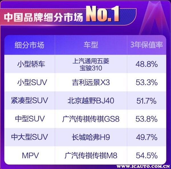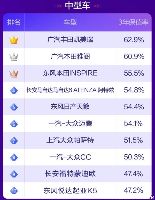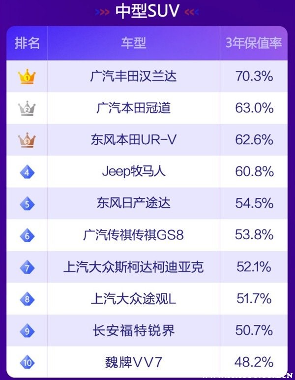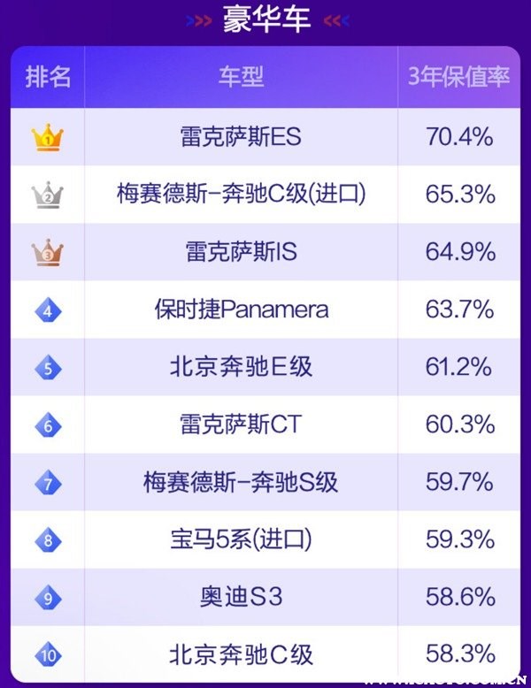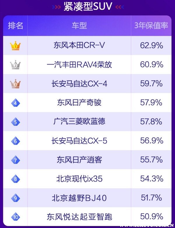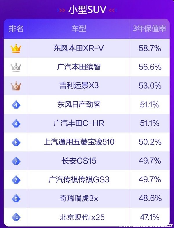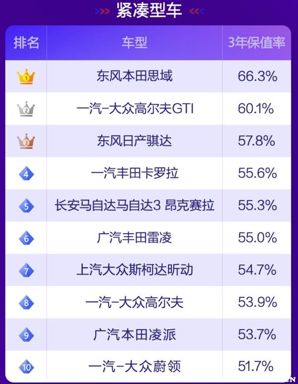 根據(jù)58汽車聯(lián)合J.D. Power頒布“紫檀獎(jiǎng)·2021中國汽車保值率風(fēng)云榜”可以了解到,目前國內(nèi)汽車市場(chǎng)上保值率最高的車分別有如下車型: