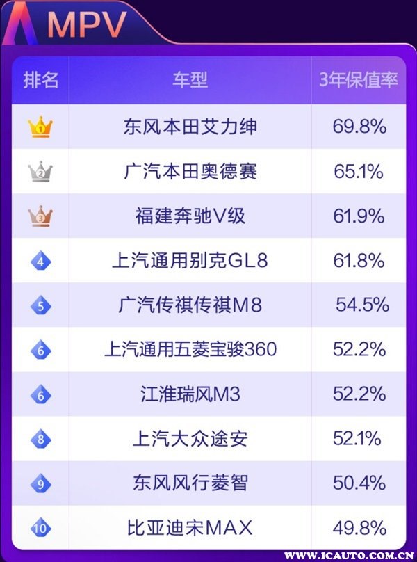 MPV領(lǐng)域保值率排行榜榜首的車型為本田艾力紳,而保值率排行榜第二名則為本田奧德賽,這兩款車互為姊妹車型,艾力紳的起步價(jià)要比奧德賽更貴,因此很多人認(rèn)為該車型更加高端,車輛相對(duì)來說跟符合商務(wù)人群的用車需求,不少公司都會(huì)考慮買艾力紳來用于商務(wù)接待,而公司預(yù)算往往比較寬裕,所以艾力紳的二手車價(jià)格一般會(huì)賣得更高一點(diǎn)。