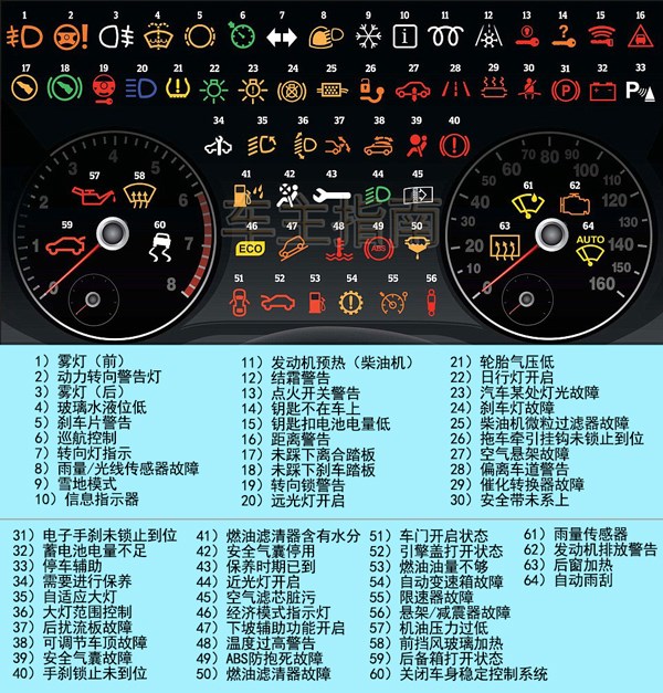 ①紅色指示燈意味著警告, 車主應該檢查故障后才能行駛。