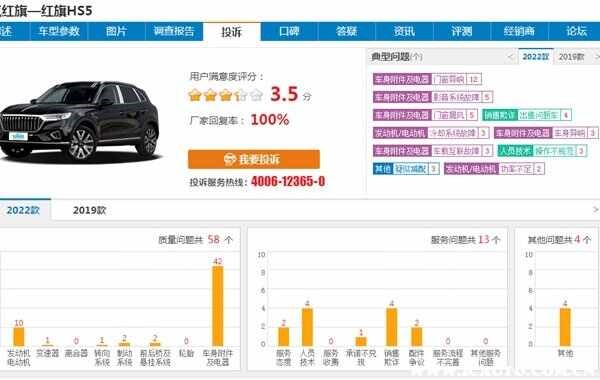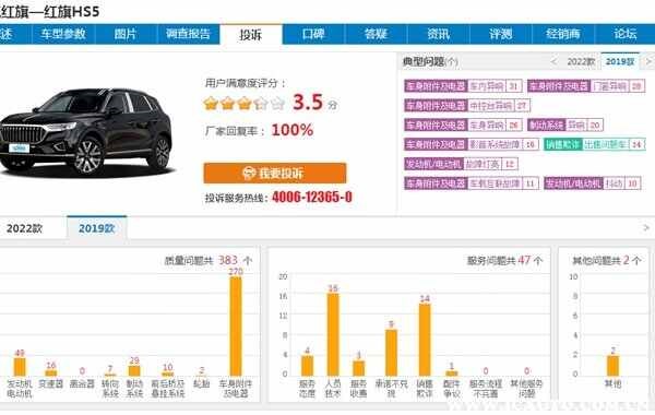 此外,服務問題共47個,問題集中在人員技術、銷售欺詐、承諾不兌現等方面。總體來看,2019款紅旗HS5口碑和質量并不良好,也許這也是部分其車主質疑紅旗hs5到底有多垃圾的因素之一。