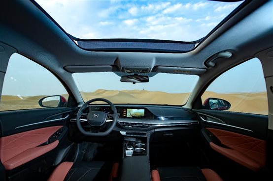 駛出冷藏車(chē)庫(kù)后,通過(guò)嘉賓現(xiàn)場(chǎng)觀測(cè)和操作,發(fā)現(xiàn)近80℃瞬時(shí)極限溫差下的熱脹冷縮并未影響到2022款逸動(dòng)PLUS的車(chē)身剛性結(jié)構(gòu)穩(wěn)定性。且得益于出色的車(chē)身密封表現(xiàn),2022款逸動(dòng)PLUS儀表盤(pán)、車(chē)燈均未出現(xiàn)水汽,智能AI小安、540°高清全景影像等功能亦可順暢使用。在順利通過(guò)“瞬時(shí)極限開(kāi)箱”環(huán)節(jié)考驗(yàn)后,2022款逸動(dòng)PLUS沿著沙漠公路,踏上了探秘中國(guó)科學(xué)院新疆生態(tài)與地理研究所塔克拉瑪干沙漠研究站的征程。