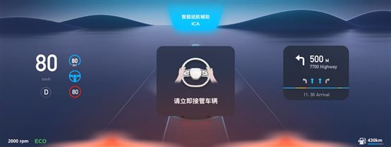 同時,傳感器采集到的道路環境及車輛信息能夠清晰直觀地呈現在27英寸4K全景智能交互滑移屏上,讓人一目了然。無論車輛即將進入匝道、變道超車,還是即將駛離NGP可用范圍,系統都可通過視覺與語言播報的形式告知用戶,帶來更安心、更智能的“人機共駕”體驗。