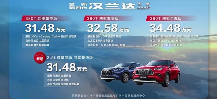 【萬車網 新車】8月10日,廣汽豐田第四代漢蘭達380T車型正式上市,推出380T四驅豪華版、380T四驅尊貴版以及380T四驅至尊版共3款車型,市場建議零售價31.48萬元-34.48萬元。在原有雙擎混動基礎上,新增380T渦輪增壓動力,進一步加強產品矩陣,拓寬消費人群。