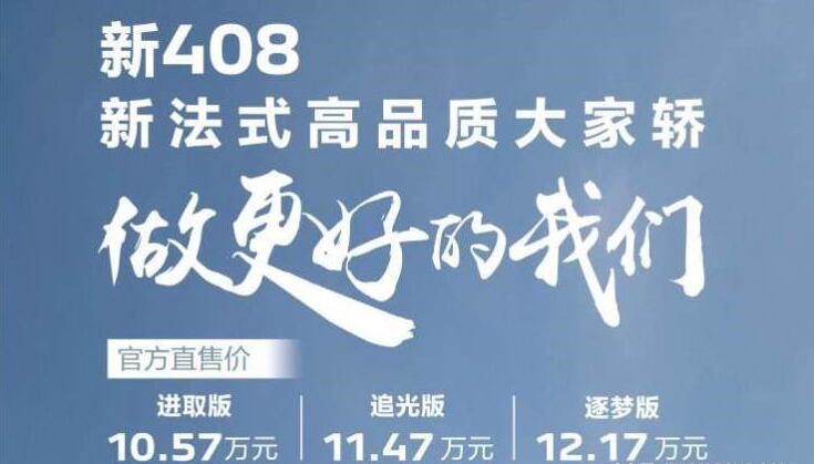 日前,東風(fēng)標致新408正式上市,新車采用了標致車型最新的外觀及內(nèi)飾設(shè)計,是國內(nèi)首款佩戴標致最新車標的車型,動力上將搭載1.6T發(fā)動機。此次上市新車共推出進取版、追光版以及逐夢版3款車型,售價10.57-12.17萬元,詳情如下: