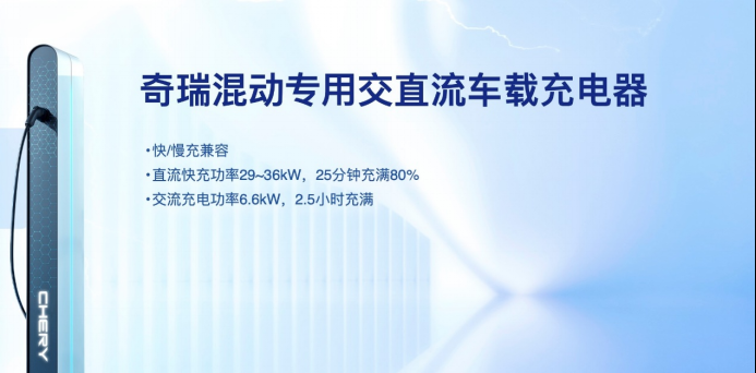 此外,在奇瑞混動專用交直流充電器的助力下,“DP-i智能混動架構”相關產品在使用直流快充功率36kW的情況下,25分鐘內電量充至80%,在交流功率6.6kW的充電樁使用時,2.5小時便可充滿,一杯咖啡、一次午餐的時間便能滿血復活。