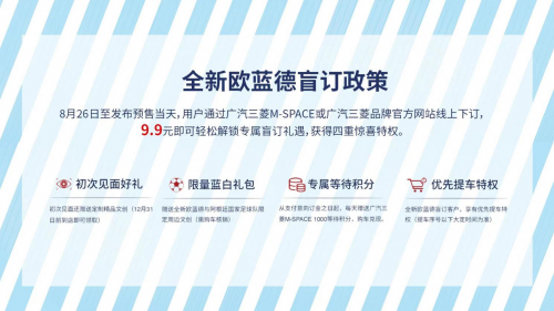 此外,為回應全國車迷的熱切期待,廣汽三菱還在車展上正式宣布開啟全新歐藍德限時盲訂活動。8月26日起,僅需9.9元即可在廣汽三菱APP或廣汽三菱品牌官方網站參與盲訂,輕松解鎖四重驚喜好禮:初次見面禮,下訂即送定制精品文創(12月31日前到店即可領取);限量藍白禮包,可在完成購車核銷后獲贈全新歐藍德與阿根廷國家足球隊特別定制的限定周邊文創;專屬等待積分禮,從支付訂金之日起,每天可獲得1000分等待積分,在購車兌現后可憑積分換取超多精美文創禮品;還有優先提車特權,讓你先人一步,上手新車。驚喜福利送不停,感興趣的車友們千萬不要錯過。