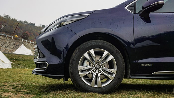 豐田賽那的尺寸方面,長寬高分別為5165/1995/1765mm,軸距為3060mm。車身側面采用了大氣的線條,車身給人感覺非常舒展。豐田賽那的頂配車型的輪胎規格為235 60/R18,搭配大尺寸厚壁的輪胎,造型相當獨特,輪胎品牌是來自固特異御乘EfficientGrip Performance,是條走靜音舒適的胎。值得一提的是,它的車寬接近2米,這也使得車內橫向空間比較寬敞。