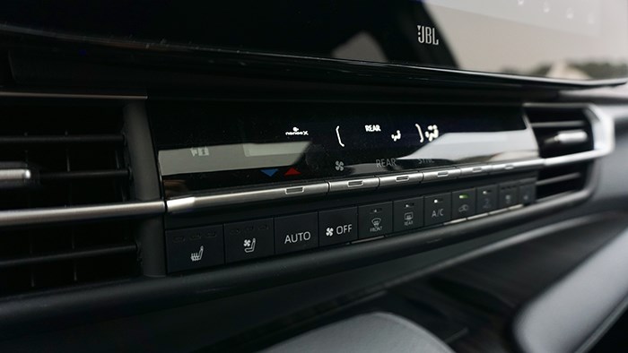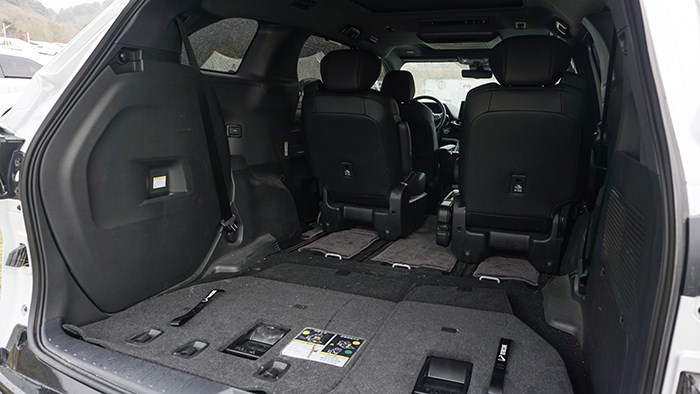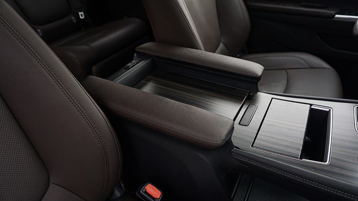 整車的空間無論是縱向橫向空間都是綽綽有余的,乘坐最為舒適的是第二排獨立座椅,第三排座椅支持魔術空間收納,40:60的比例完全收納至車尾箱下方達到平整的狀態。座椅電動調節、座椅加熱、座椅通風,甚至腿托、靠背調節等功能配置,也讓置身于第二排的乘客可以得到比較尊崇的乘坐體驗。第二排座椅還擁有超長滑軌,滑動前后調節行程最長可達 816mm,靠背最大調節角度可以做到 81°。