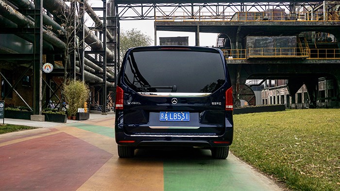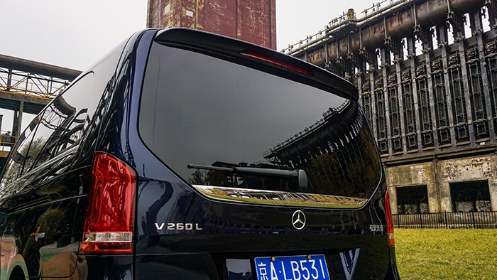 奔馳V260L長軸距豪華版的尾部同車頭設(shè)計一樣,線條圓潤飽滿。一根粗壯的鍍鉻裝飾條鑲嵌在后窗玻璃下沿,提升了尾部的豪華感??傮w來說,奔馳V260L的外觀設(shè)計是很成功的,在豪華和時尚感的層面上都很到位。