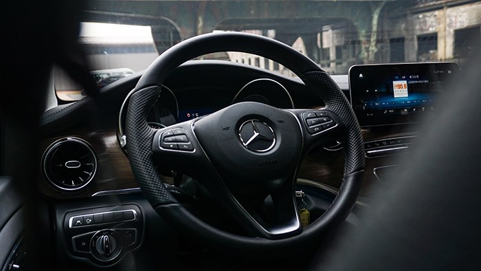 三幅式方向盤帶有多功能按鍵,手感舒適。儀表盤是標(biāo)準(zhǔn)的奔馳家族樣式,中央的彩色液晶顯示屏尺寸很大。