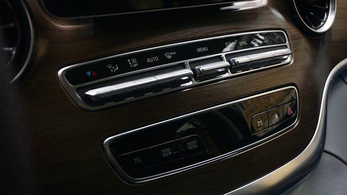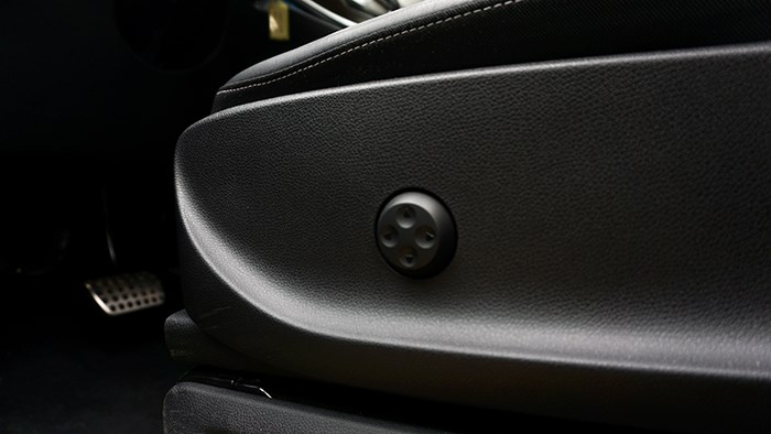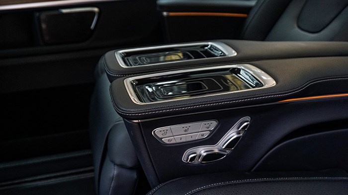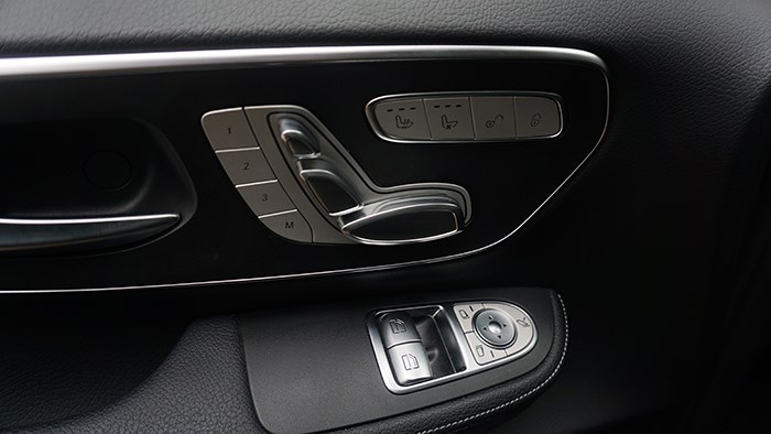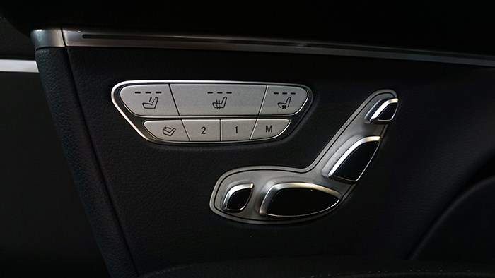 前排座椅均為多項電動調(diào)節(jié),并帶有加熱功能。前排駕駛席實際駕駛的乘坐感受還是軟硬適中的,尤其對腰部兩側(cè)的包裹和支撐性特別好,這一點值得稱贊。座椅的調(diào)節(jié)鍵同奔馳的轎車一樣,被安排在車門上。