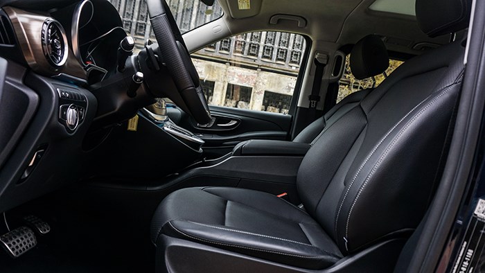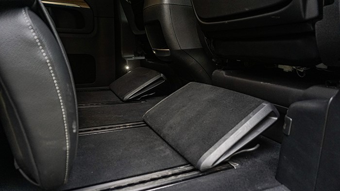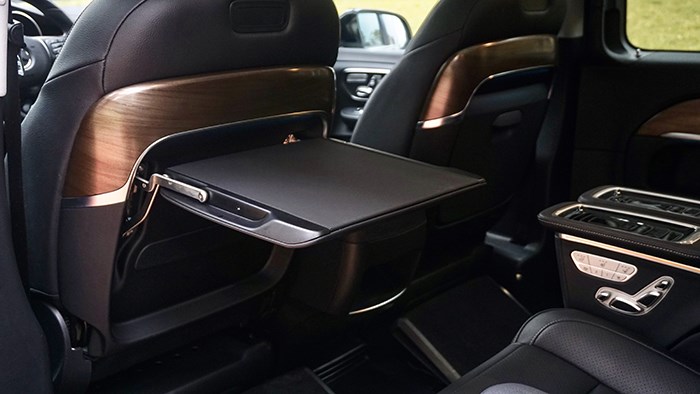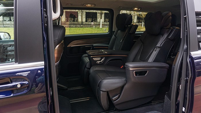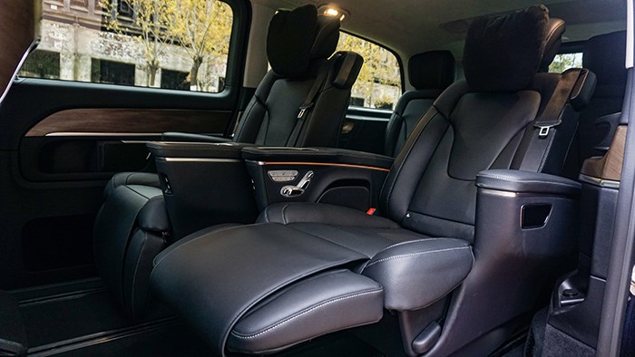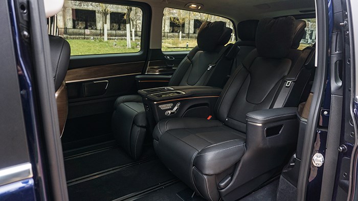 奔馳V260L長軸距豪華版使用了著名的柏林之聲立體環(huán)繞音響,第二排擁有獨立航空座椅,帶有電動腿托,腳托,座椅還帶有通風(fēng)、加熱功能。前排中央扶手后端,有帶有冷熱開關(guān)的杯架,設(shè)計的很貼心。如果將第二排座椅向后移動到最后方,第二排獲得的腿部空間是可以用奢侈來形容的。折疊小桌板可用于臨時辦公,地板處的腳托也可以為舒適性再次加分。