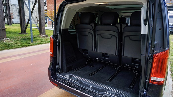 第三排座椅也擁有著絕對的實用性,可以輕松乘坐3位成人,兩側(cè)還擁有水杯架。另外奔馳V260L的后備箱比較規(guī)整,進(jìn)深可觀,所以空間還是較為寬敞的,可以存放幾個標(biāo)準(zhǔn)尺寸行李箱。巨大的尾門尺寸驚人,但它擁有電動尾門開關(guān),存取行李變得很方便。
