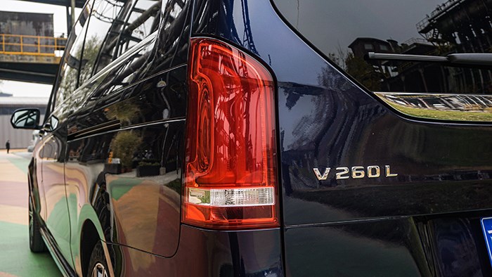 眼前這臺德系豪華MPV奔馳V260L長軸距豪華版已經(jīng)實現(xiàn)了國產(chǎn)化,從車尾的標(biāo)識可以看到福建奔馳的字樣。長軸距版共有兩款車型:豪華版64.68萬元和尊貴版61.68萬元。具體區(qū)別在車身長度方面:豪華版比尊貴版長了30mm,接近角和離去角也有細(xì)微的區(qū)別。另外,豪華版為19寸輪轂,尊貴版為18寸輪轂,氣動懸架是該車型的一大賣點。