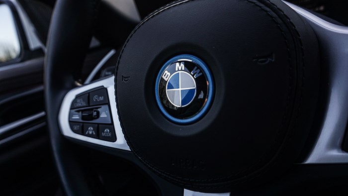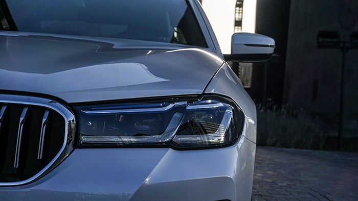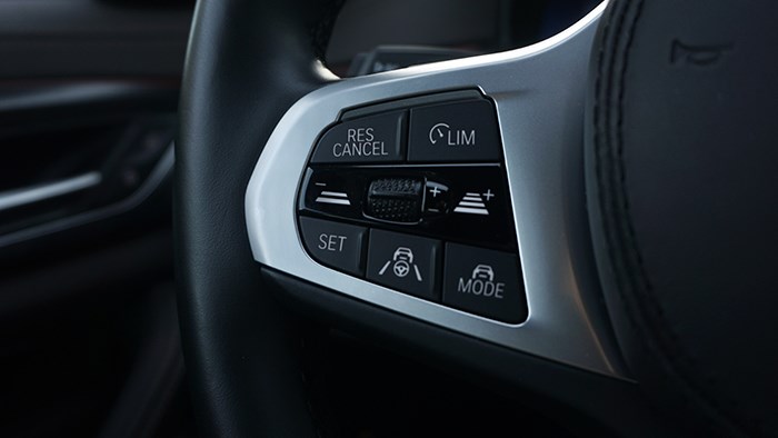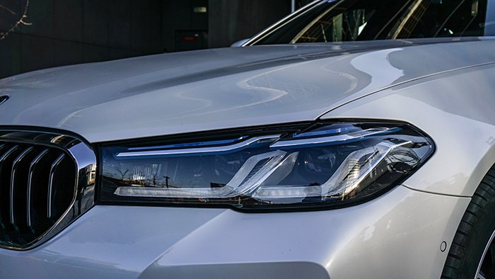 前大燈采用自適應(yīng)LED激光大燈照明,抽象化的天使眼仍然辨識(shí)度很高。保險(xiǎn)杠中央毫米波雷達(dá),以及前風(fēng)擋集成雙攝像頭讓這臺(tái)車具備了2.5級(jí)自動(dòng)駕駛功能,暗示了寶馬的科技含量。