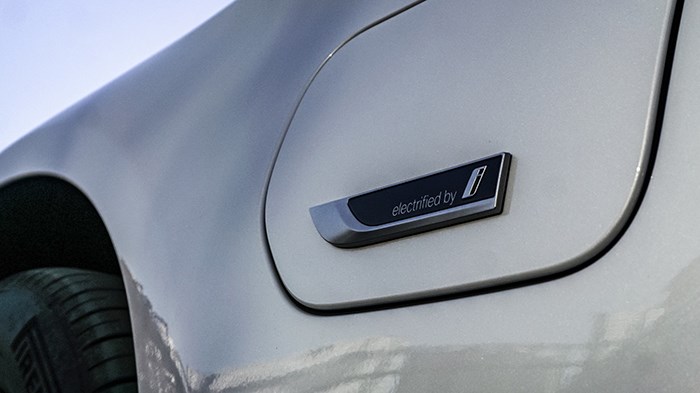 翼子板上有它的充電接口及“i家族”標(biāo)志,前后輪轂均采用18寸普利司通245/45 R18泰然者輪胎。電池容量17.7kWh,3.9小時(shí)可將電池充滿。NEDC純電續(xù)航里程95km,WLTC純電續(xù)航里程73km。長(zhǎng)寬高5106×1868×1490mm,軸距3105mm。
