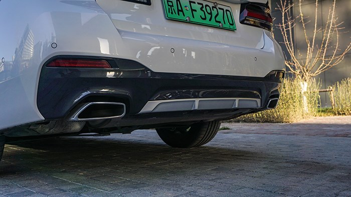 從外觀上來(lái)看,這臺(tái)長(zhǎng)軸版中大型豪華轎車似乎并不急于給人展示自己新能源汽車的身份,僅僅是車身的一些小細(xì)節(jié)表露出自己的不俗身世。新車充滿力量感的線條、標(biāo)志性的雙腎進(jìn)氣格柵,都表明了它純正的血統(tǒng)。