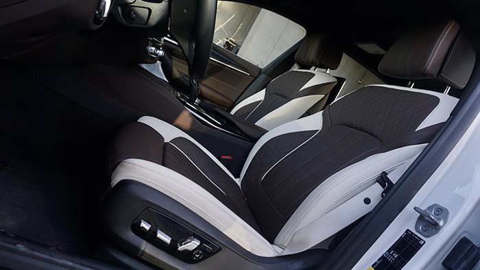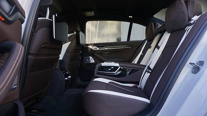 作為一臺(tái)中大型豪華轎車,5系插電混動(dòng)的座椅舒適性無(wú)可挑剔,雙色拼色的設(shè)計(jì)也讓眼前一亮,好感倍增,前排擁有12項(xiàng)電動(dòng)調(diào)節(jié),支撐到位,還帶有加熱及通風(fēng)功能。