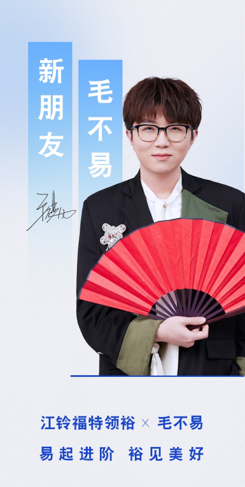 2023年1月19日,江鈴福特科技官方微信發布,靈魂歌手毛不易為旗下江鈴福特領裕的新朋友。毛不易以獨特的音樂風格和富有感染力的詞曲創作,與新生代年輕人同頻共振。他的實力和堅持與江鈴福特領裕的進階之路相得益彰。未來,易起進階,裕見美好!
