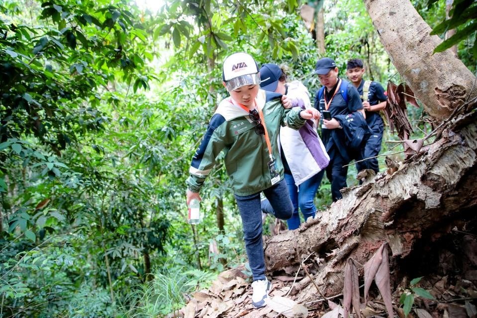 行走在熱帶雨林猶如置身在一場植物的盛宴中,古樹參天,遮天蔽日,一路上會看到很多稀有且珍貴的是植被,據說很多植物都有很高的藥用價值,而且只在這里生長。體驗官們聽著雨林中的百鳥爭鳴,呼吸著原始森林的新鮮空氣,跋山涉水,欣賞雨林絞殺、石山生樹、老莖生花等奇觀,只顧驚嘆,早已忘記了疲憊。好在有華為手環隨行,全程監控在徒步中的身體健康數值,讓大家不用在此分心,同時也可讓家長隨時掌握孩子的情況,放神獸們在雨林里自由去野。