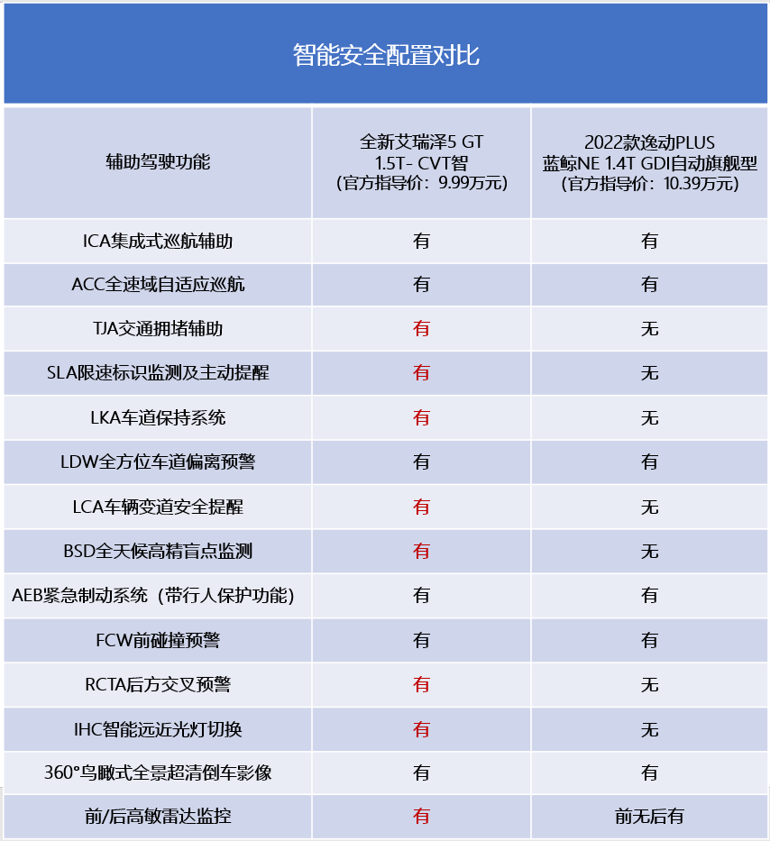 除去耐打的顏值之外,硬核的科技體驗是年輕人對座駕的另一大需求。隨著車載技術的開發運用,國產車型在智能駕駛輔助技術方面有了長足進步,以這兩款7萬級家轎的頂配車型為例,兩車都搭載了輔助駕駛系統,但功能及體驗卻不盡相同。2022款逸動PLUS可提供車道偏離預警、并線輔助、360度倒車影像等多項功能,幫助用戶簡單應付變道、倒車等場景。相比之下,艾瑞澤5 GT對用戶的駕乘安全與智能化體驗“照顧”得更為周全。新車搭載了14項L2 級別的輔助駕駛功能,涵蓋緊急制動系統,車道保持輔助,道路交通識別等更為人性化、可緩解疲勞的科技功能,助力用戶輕松應對擁堵復雜的城市道路場景,讓用戶的每一次出行都能加倍的安全放心。