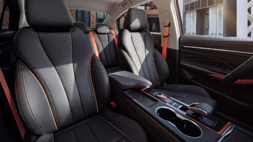 如果說外形更多是別人在看,內(nèi)飾設(shè)計(jì)就是純粹的取悅自己,它的內(nèi)飾設(shè)計(jì)讓我特別中意,黑橙的主題撞色有型有款,這種動(dòng)感競(jìng)速氛圍對(duì)于年輕人尤其是性能黨來說相當(dāng)有說服力;鐳雕飾板從視覺上帶來不錯(cuò)的層次感,質(zhì)感絕對(duì)是同級(jí)上乘。