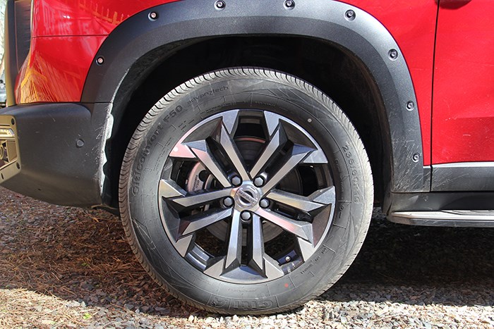 極具設計感的雙色五幅輪轂,在造型上不輸給任何進口車型。輪胎方面它采用了偏向舒適性的佳通GitiComfort F50型號,前后輪胎尺寸同為235/60 R19。輪眉上裸露的鉚釘是我最喜歡的外觀設計之一,不同于有些車型一味地堆砌夸張元素的做法,大狗在外觀設計上盡量保持了克制,在粗獷與精致間達到了很好的平衡。