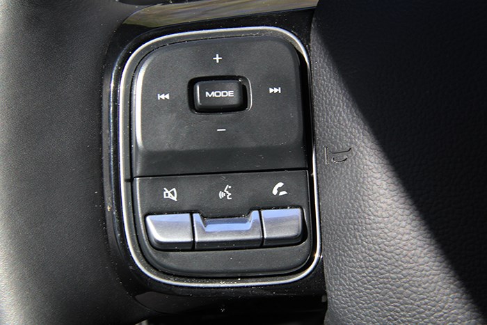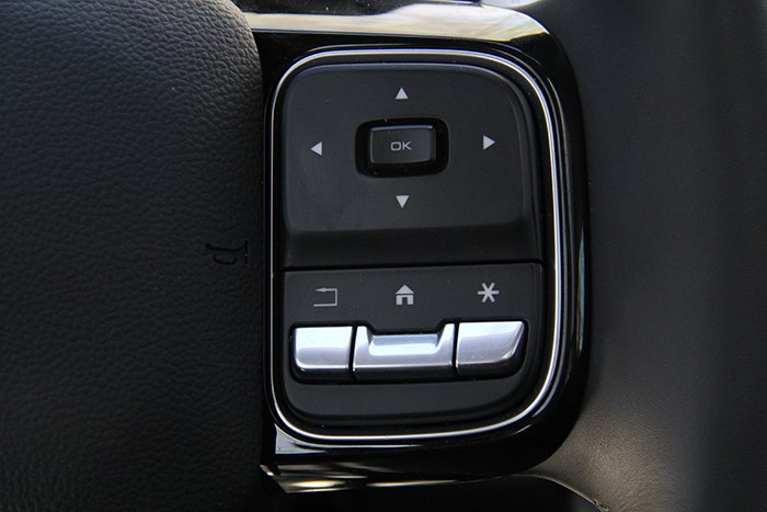 三幅式方向盤握感較為飽滿,造型時尚立體,看起來很有力量感。方向盤操作時轉向有一定虛位,指向并不十分精準,但轉向阻尼調教的不錯,保持了一種相對柔順的感覺。方向盤的多功能按鍵包含了儀表信息控制、中控信息控制、語音交互、藍牙電話等功能,按鍵大小適中,靈敏度與手感反饋表現出色。