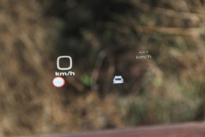 抬頭顯示會實時顯示駕駛時最為關注的信息,如時速、當前路況限速、車身周圍情況等,如果你要是用車載導航或藍牙電話時,它還會顯示導航信息與通話信息,可以說在這一方面,大狗做的是很不錯了,功能設計十分人性化。