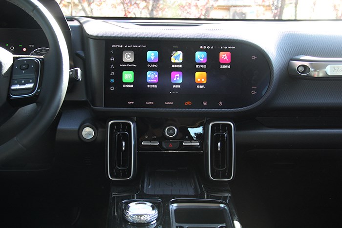 大狗采用旋鈕式換擋方式,造型精致,為車內節省了不少空間。旋鈕操作的換擋速度也令人滿意,只是D擋與M擋設置在了一起,剛接觸時容易擰錯,我在駕駛時曾聽到發動機運行聲音不對時,才發現誤掛了M擋,所幸影響不大,切換到D擋也比較方便,不過如果能在換到M擋時可以增加特殊的提示音就更好了。