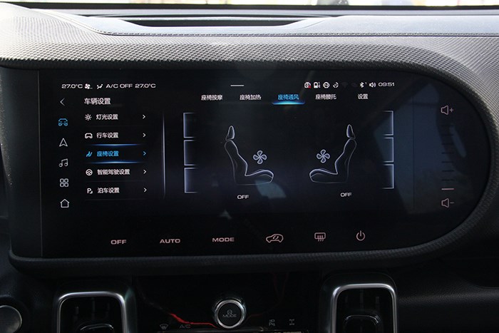 關于座椅這里值得說的一點是,哈弗為大狗追獵版在提供了座椅加熱/通風/腰托電動調節外,還設計了座椅按摩功能,實際體驗下來效果不錯,按摩幅度可調,但幅度并不激進,以保證行車安全,這套按摩系統可以有效緩解因長時間駕駛而產生的背部疲勞感。