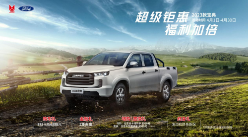 江鈴皮卡以用戶為中心,持續推出高品質車型,為喜愛皮卡的用戶創造驚喜,關注用戶需求,讓更多用戶可以享受到優質的服務和優惠。即日起至4月30日,通過江鈴皮卡官網和經銷商參與活動,即可享受多重購車禮遇。在這個美好的春日,江鈴皮卡期待伴您一路馳騁,享受事業與生活的精彩旅程。