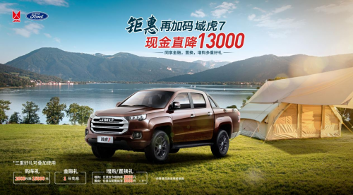 事業和生活不可兼得?那是因為你沒遇上域虎7。既可公路馳騁,又可翻山越嶺,還能帶你和家人周末郊游野餐,一輛域虎7全部滿足。在一車多用的皮卡新時代,強大的動力是載貨、出行和出游的保障。域虎7搭載福特發動機和豪車標配采埃孚8AT變速箱,輕踩油門,爆發強勁動力,可以輕松應對城市道路、高速或者山路。此外,域虎7采用高端乘用化內飾,提升后排間距和靠背角度,標配一鍵啟動、無鑰匙進入、自動大燈和感應雨刷,搭載潮流智能座艙系統,提升出行的舒適性和趣味性。4月購江鈴皮卡域虎7,可享現金直降13000元,同時可享受金融購車1年免息和任意皮卡增購/置換3000元補貼。