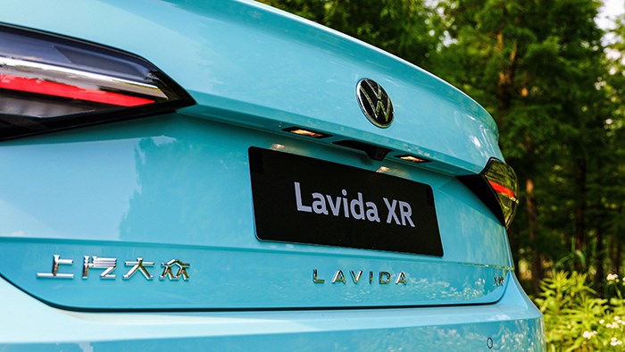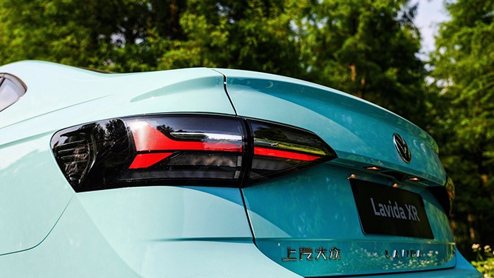 尾部大燈的內部結構很像一只射出的箭,并經過了黑化處理,還是很有特點的。尾燈上還鑲嵌了鍍鉻裝飾,提升細節(jié)方面的豪華感。在牌照框下沿,粘貼了LAVIDA朗逸的英文標識,讓車輛尾部多了些精致感。