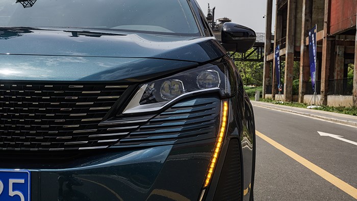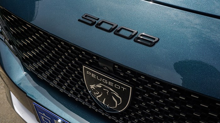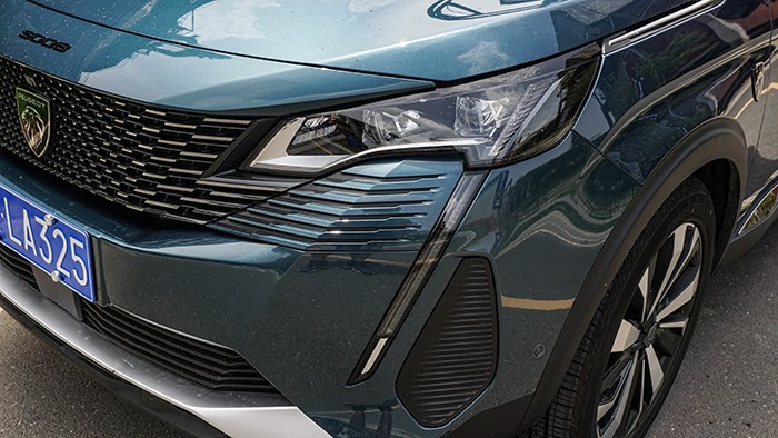 新款5008外觀最明顯的變化是車頭設計,散射狀進氣格柵搭配全新盾牌獅子頭車標Logo,兩側翼子板也有鑲嵌這個全新的徽章logo。