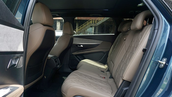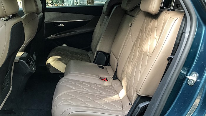 車內座椅布局上,全新標致5008的7座版本,頭頂空間也很充足,要是把第二排座椅前移一點,身高1.75米的乘客坐進第三排,腿部和頭頂也不會有壓抑感