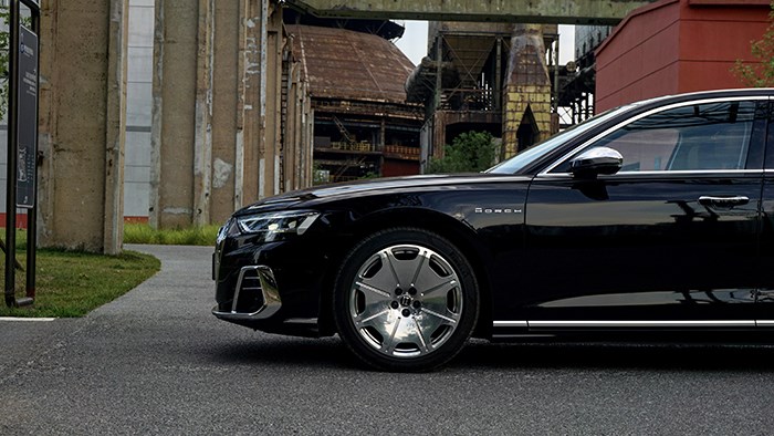 Horch專屬車標(biāo)隨處可見,彰顯它的獨(dú)特。致敬初代奧迪A8 D1的20寸專屬電鍍輪轂的氣場非同一般,比普通版A8L輪轂更吸引眼球,盡顯端莊與高貴。