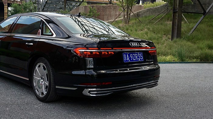 尾部方面,配備奧迪OLED貫穿尾燈,細(xì)長鍍鉻線條的修飾拓寬了整個(gè)尾部的視覺效果。尾部線條相對圓潤,加上鍍鉻包裹的隱藏式排氣,修飾出較濃的商務(wù)氣息。