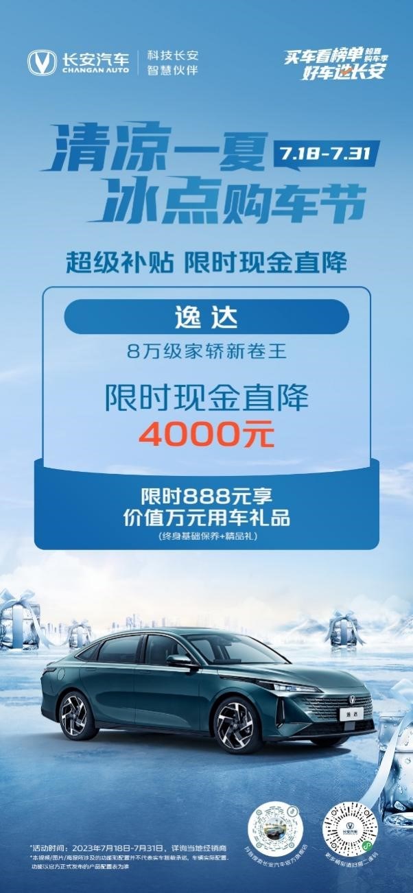為讓更多家庭輕松擁有美好出行生活,長安汽車“清涼一夏 冰點購車節(jié)”還針對逸達推出超級補貼,限時現(xiàn)金直降活動。現(xiàn)在購買“八萬級新晉家轎卷王”,可享4000元現(xiàn)金直降,限時888元享價值萬元用車禮品!寵粉活動截止至7月31日,巔峰鉅惠,抓緊時間,速速上車!