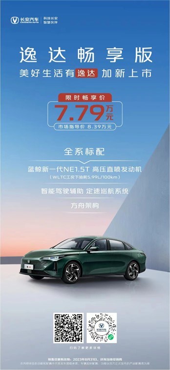 以豐富行程,感受逸達魅力;以親身體驗,擁抱美好生活。為讓更多用戶“FUN肆一夏”, 滿足他們的多元用車需求,8月8日,長安逸達暢享版驚喜上市,現(xiàn)金直降6000,限時暢享價僅需7.79萬元。貸款購逸達其他配置車型,首付4-8萬元,立享36期低利息;置換購車享至高4000置換補貼。寵粉福利,巔峰讓利,讓用戶“滿逸即達”,綻放更多夏日精彩!