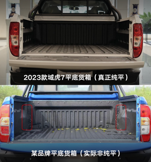 作為一款兼具商用與乘用功能的皮卡,強(qiáng)大的裝載能力自然必不可少。2023款域虎7同步推出平底貨箱車型,相較于行業(yè)上普遍存在的平底貨箱車型,由于其無法避讓燃油管道,通常采用預(yù)留鼓包的設(shè)計(jì),既不美觀,又會(huì)影響空間利用率。