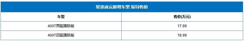 10月10日,星途凌云新增2款車型上市,售價(jià)區(qū)間17.99-18.99萬。