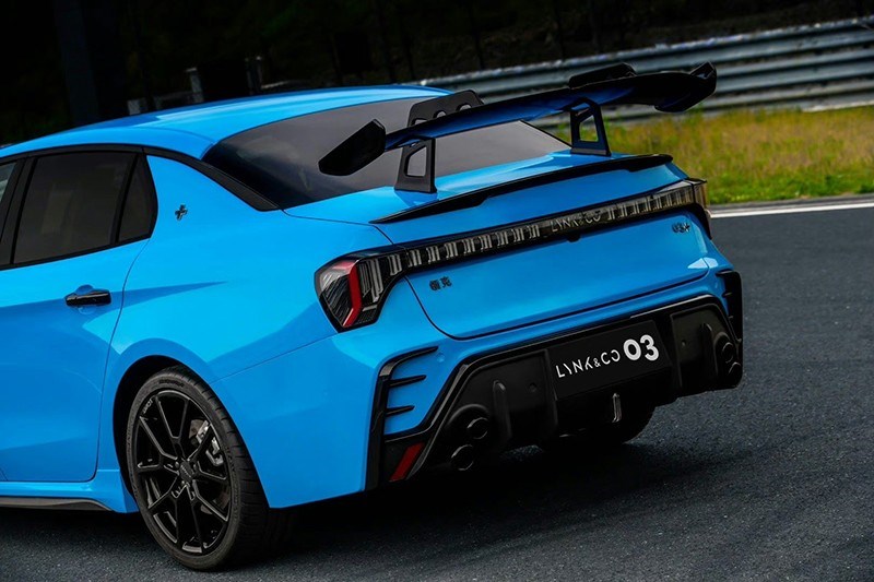 新車在03 Cyan定制版的基礎上減重150kg,并配備競技式寬體、三段可調鵝頸式碳纖維尾翼、輕量化碳纖維組件(前唇、后視鏡、翼子板)、斜邊四出排氣。四驅版全身采用全黑設計,也即是“黑武士”配色,兩驅版則沿用Cyan藍配色。車身尺寸方面,新車長寬高分別為4697*1843*1456mm,軸距2730mm。
