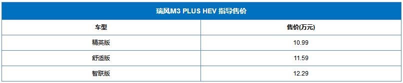 瑞風(fēng)M3 PLUS HEV正式上市 售價(jià)10.99-12.29萬