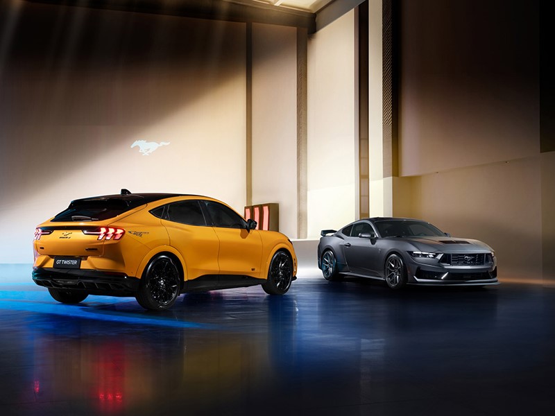 外觀方面,新車沒有明顯變化,繼續采用鯊魚鼻式封閉式格柵,Mustang標志性三條柱形尾燈、以及Fastback的車身造型等,全部配備Bremno全鋁四活塞式前輪卡鉗。新車將增加嘯日橙車身配色。車身尺寸方面,新車長寬高分別為4730*1886*1621mm,軸距2984mm。