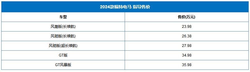 12月10日,2024款福特電馬正式上市,共推出5款車型,售價區間為23.98-35.98萬。