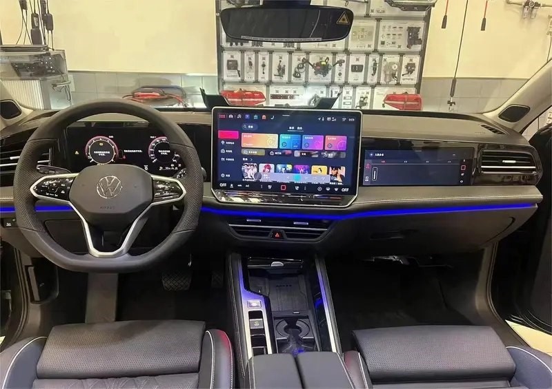 走進車內,我們能夠看到全新邁騰有著更大的變化。具體來看,該車配備全液晶儀表、大尺寸懸浮式中控屏以及疑似副駕駛娛樂屏,整體設計更像不少新勢力旗下車型的設計思路,滿足車內不同乘車人的需求。同時,通過圖片來看,其中控UI也得到些許生機,內容量要更加豐富。