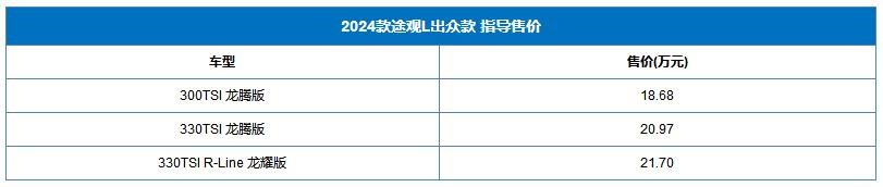 上汽大眾2024款途觀L出眾款正式上市,共推出3款車型,售價(jià)區(qū)間為18.68-21.70萬(wàn)。